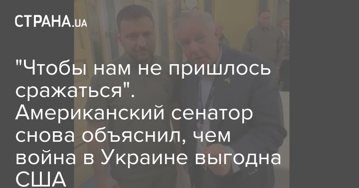 "Чтобы нам не пришлось сражаться". Американский сенатор снова объяснил, чем война в Украине выгодна США