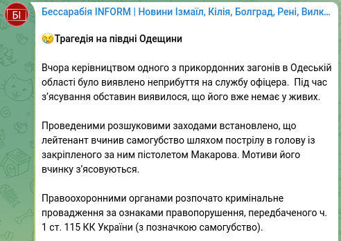 Под Одессой офицер-пограничник выстрелил из пистолета себе в голову - СМИ