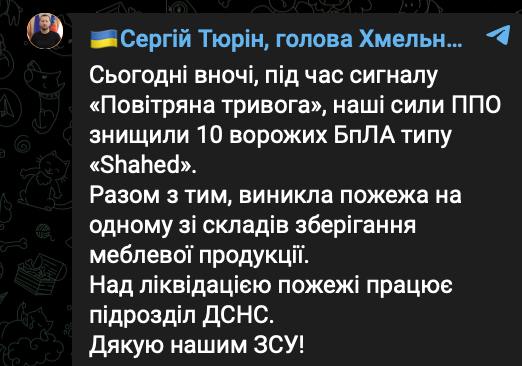 12.01 Последствия прилета по складу мебели в Хмельницкой области.