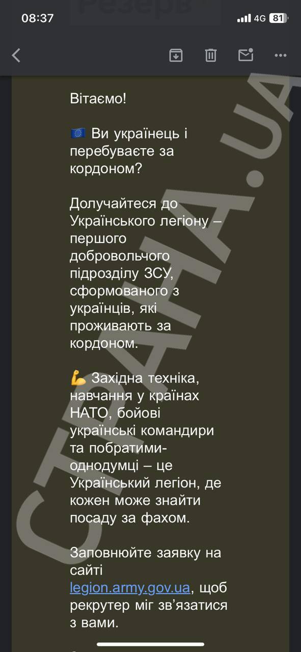10.12 Украинским мужчинам за границей стали приходить сообщения с призывами вступить в Украинский легион - добровольческое подразделение ВСУ, сформированное из украинцев за границей.