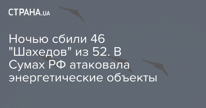 В Сумской ОВА сообщают, что россияне нанесли авиационный удар по энергетическим объектам города Сумы, применив БПЛА типа "Шахед".