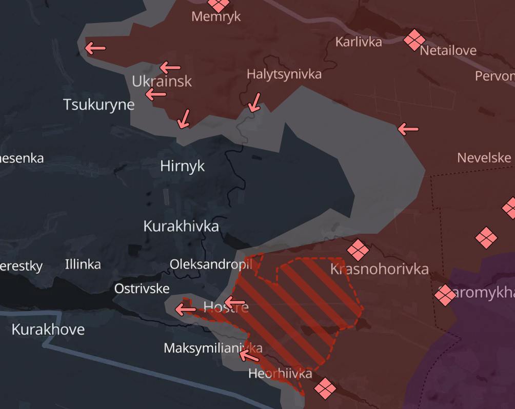 Войска РФ взяли под контроль зону юго-западнее Красногоровки - практически захватили Острое и ведут штурм Максимилиановки, которая захвачена примерно наполовину.