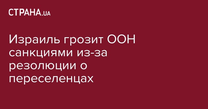 Израиль грозит ООН санкциями из-за резолюции о переселенцах