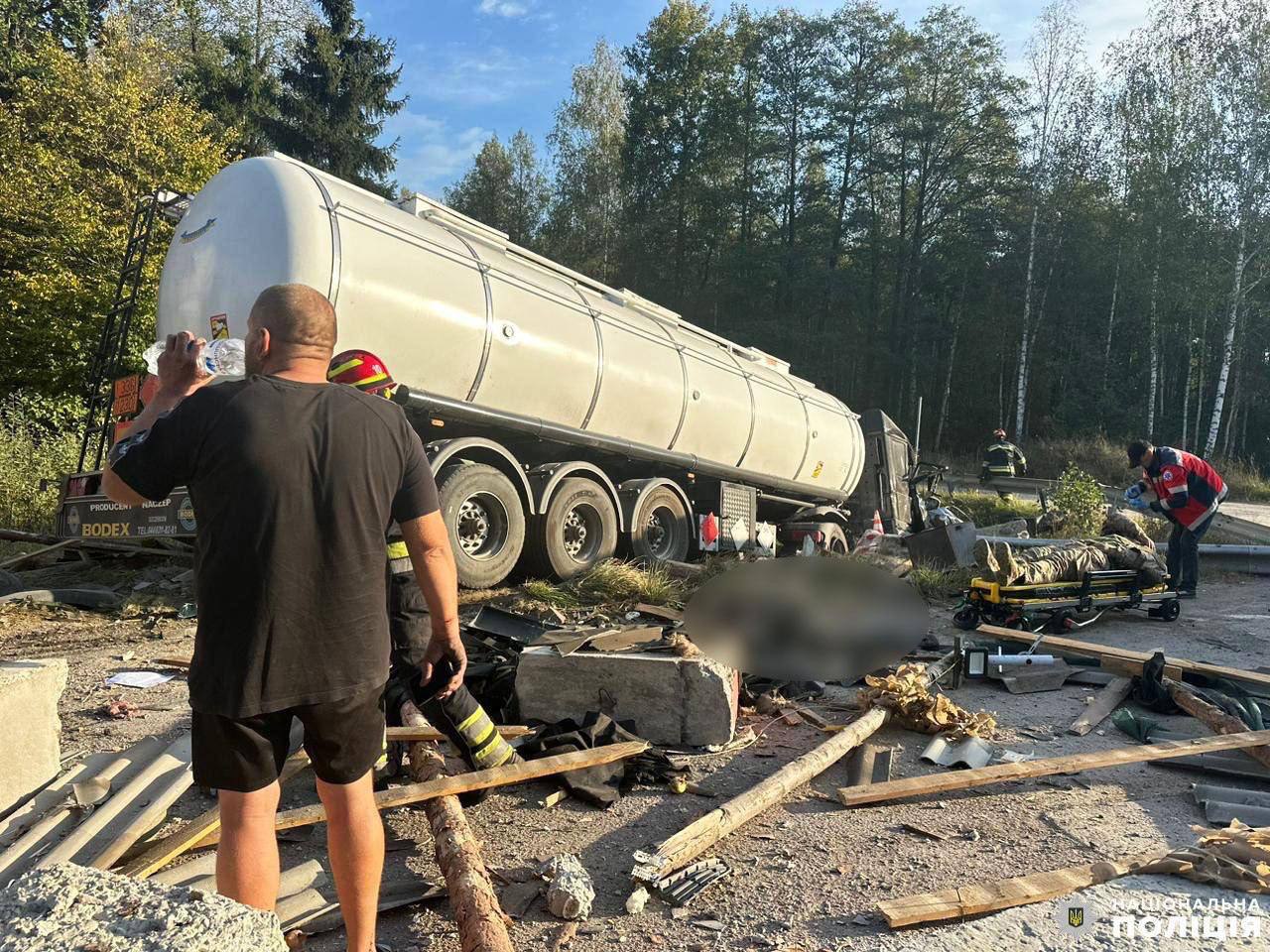 Автоцистерна с газом врезалась в блокпост на границе Ровенской и Житомирской областей. Погиб полицейский.