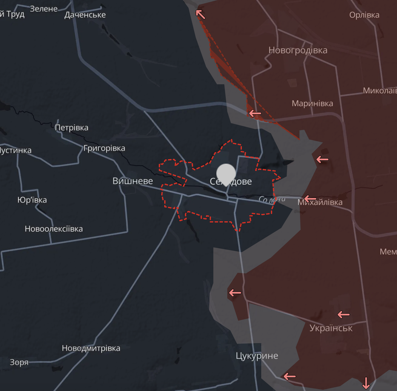 Также вчера Deep State сообщил о захвате россиянами села Мариновка и широкой полосы к юго-западу от Новогродовки. Все это направление на Селидово с северо-востока.