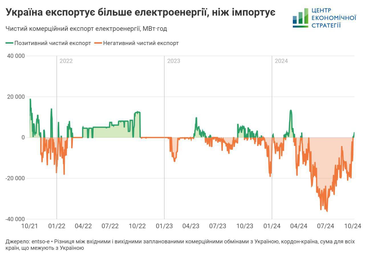 Украина впервые за полгода экспортирует больше электроэнергии, чем импортирует.