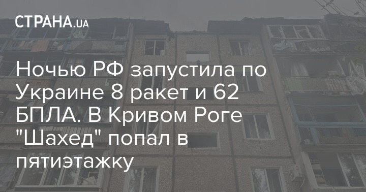 Ночью РФ запустила по Украине 8 ракет и 62 БПЛА. В Кривом Роге "Шахед" попал в пятиэтажку