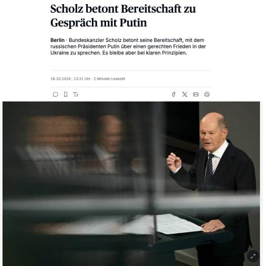 Напомним, недавно Reuters со ссылкой на немецкого чиновника сообщило, что Шольц готов к переговорам с Путиным, если они приведут к миру в Украине.