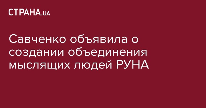 Савченко объявила о создании объединения мыслящих людей РУНА
