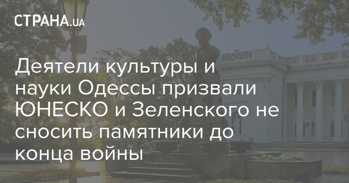 115 представителей культуры, искусства и науки Одессы подписали обращение к ЮНЕСКО и Владимиру Зеленскому с призывом отложить решение вопроса о сносе городских памятников и переименования улиц до конца войны.