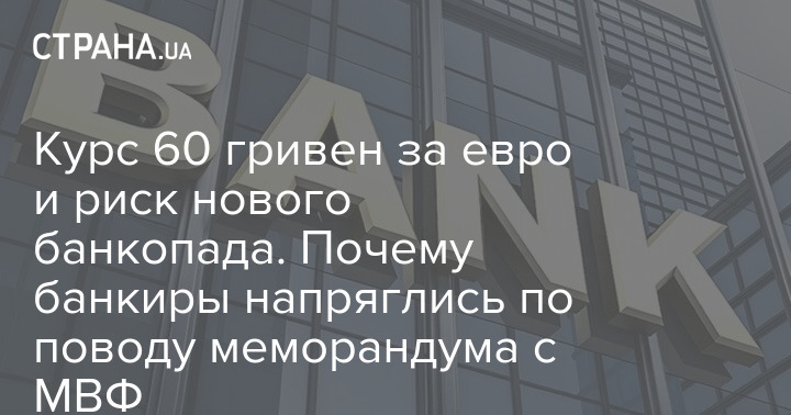 Курс 60 гривен за евро и риск нового банкопада. Почему банкиры напряглись по поводу меморандума с МВФ