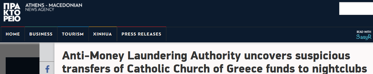 Два католических священника украли из церковной казны в Греции три миллиона евро и вложили их в ночные клубы