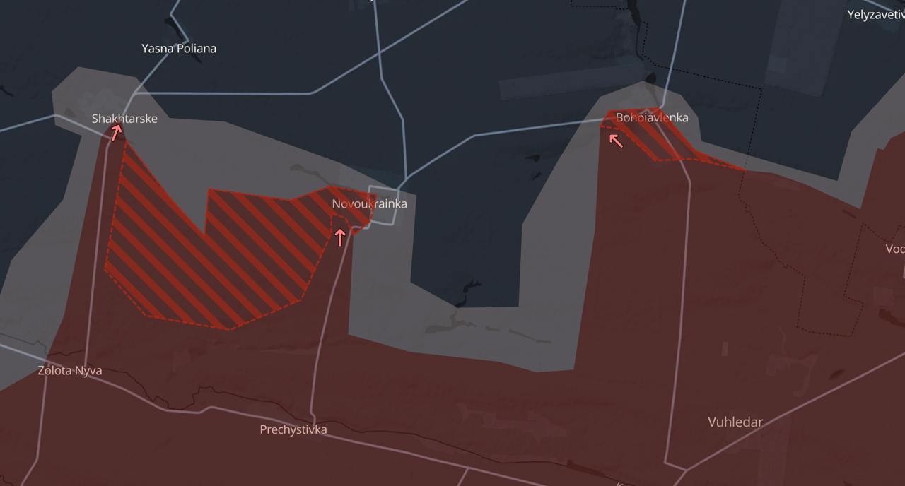 Также DS подтвердил захват почти всей Богоявленки (к северу от Угледара). Небольшая часть села, по версии паблика, находится в серой зоне.