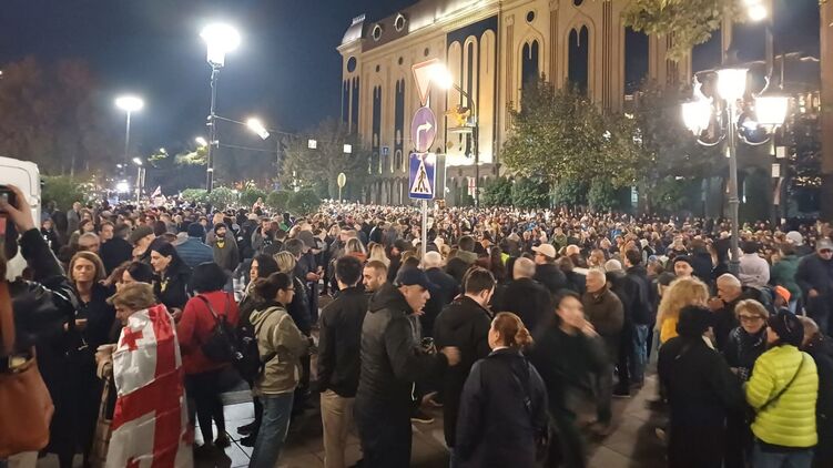 Акция протеста в Тбилиси завершилась исполнением гимнов ЕС и Грузии, после чго протестующие начали расходиться.