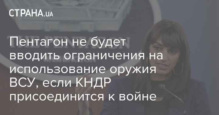 Пентагон не будет вводить новых ограничений на использование американского оружия Украиной, если КНДР присоединится к войне.