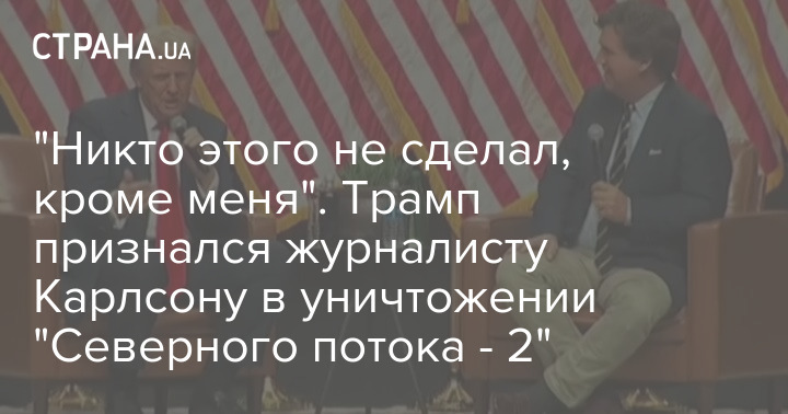 "Они любят говорить, что я друг России, что я работал на Россию, что я российский шпион. Эти люди больны. Самая большая работа России, которая у нее когда-либо была - это "Северный поток - 2", самый большой в мире газопровод из России в Германию. Я уничтожил его, и никто этого не сделал, кроме меня", - заявил Трамп Такеру Карлсону.