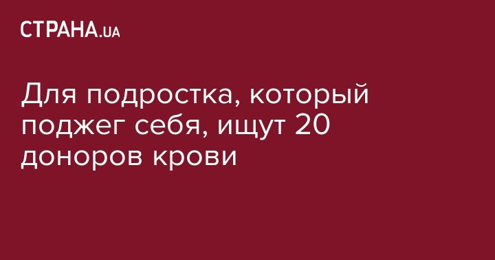 На Днепропетровщине срочно собирают донорскую кровь для спасения подростка, который пострадал от самоподжога. Об этом информирует "Радио Свобода".