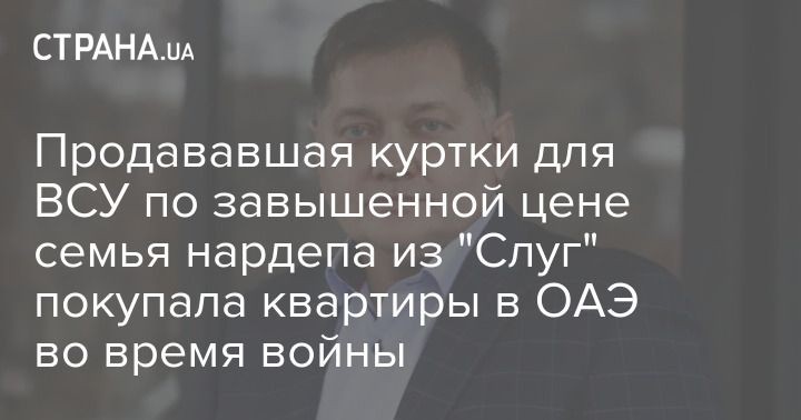 Продававшая куртки для ВСУ по завышенной цене семья нардепа из "Слуг" покупала квартиры в ОАЭ во время войны