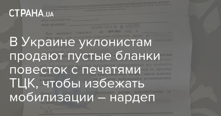 По словам нардепа, подобный подлог документов помогает уклоняющимся от службы избежать получения настоящей повестки. Цена незаполненной повестки с печатями стартует от тысячи гривен.