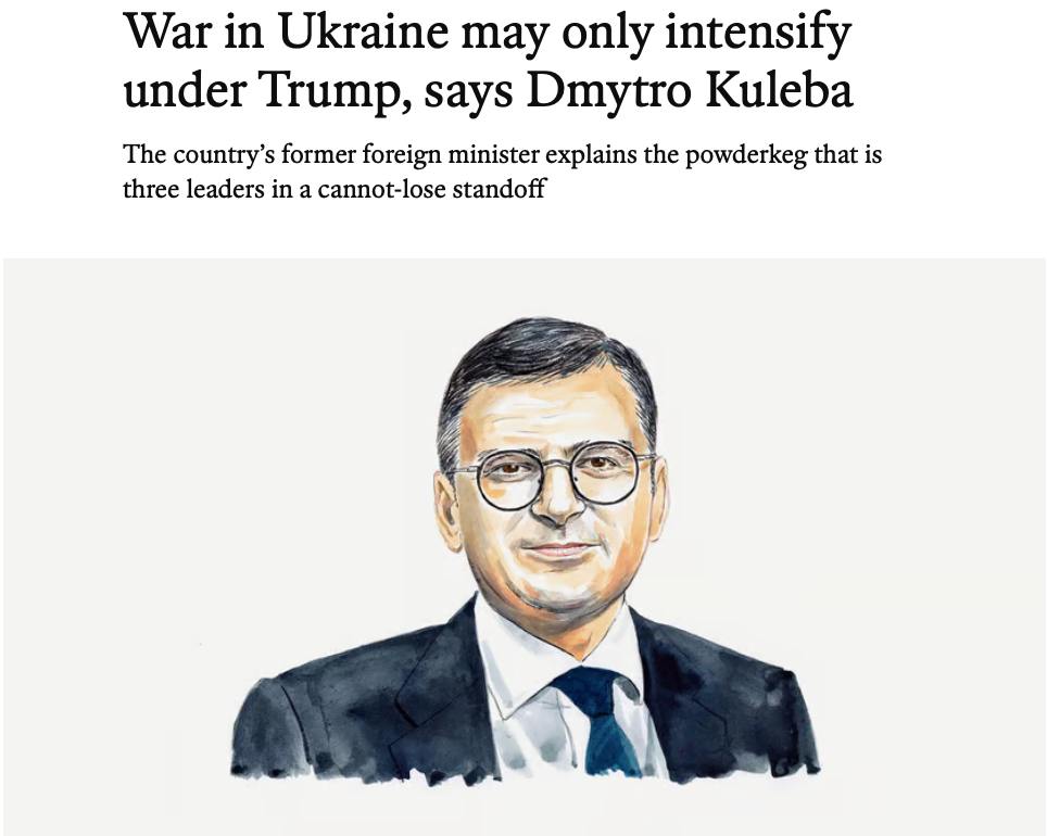 "Те, кто жаждет деэскалации под руководством избранного президента (США - Ред.), могут быть шокированы, увидев прямо противоположное в ближайшие месяцы. В данный момент и Зеленский, и Путин видят в Трампе шанс изменить баланс в свою пользу. В свою очередь Трамп будет вынужден следовать за ними, ужесточая свою линию", – утверждает бывший глава украинской дипломатии.