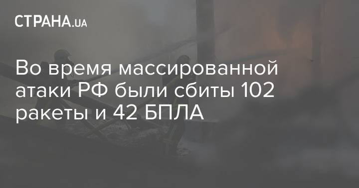 Всего по Украине было запущено 120 ракет и 90 БпЛА. Из них сбито 102 ракеты и 42 БПЛА.