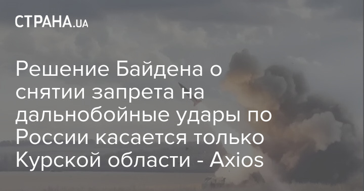 Решение Байдена о снятии запрета на дальнобойные удары по России касается только Курской области - Axios