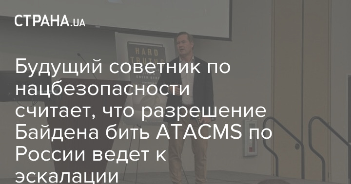 Будущий советник по национальной безопасности Белого дома Майк Уолтц заявил, что разрешение на удары ракетами ATACMS по территории России ведет к эскалации.