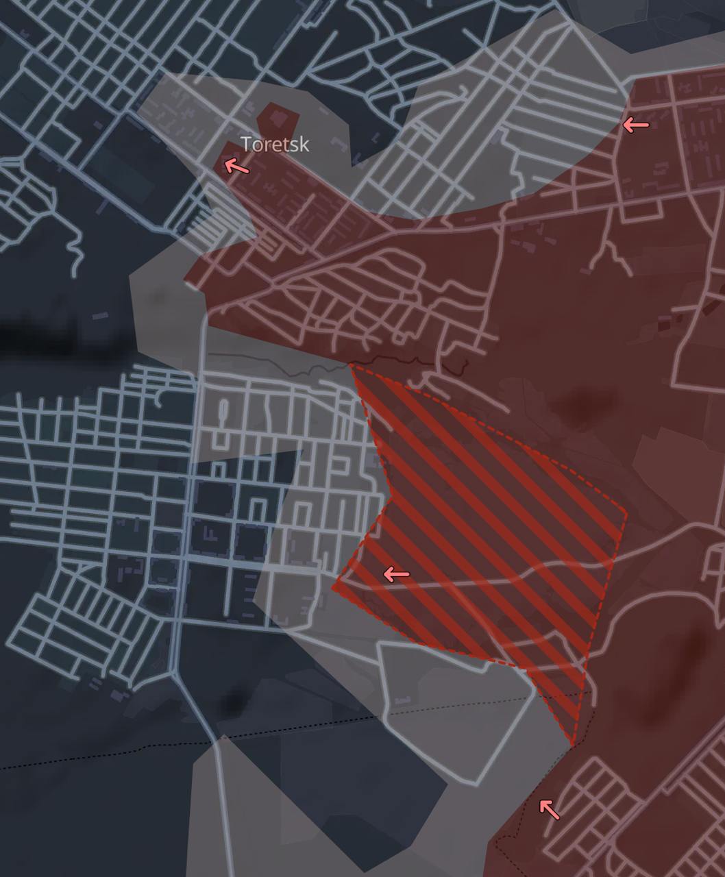 Продвижение в Торецке сегодня также зафиксировал военный паблик Deep State.