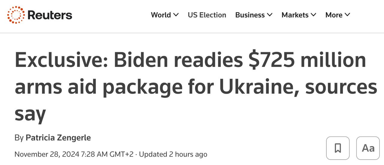 Администрация Байдена готовит еще один пакет военной помощи Украине на 725 млн долларов - Reuters