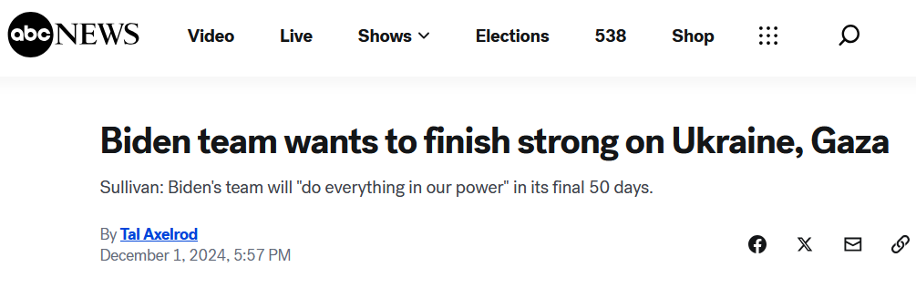 Об этом заявил помощник президента США по национальной безопасности Джейк Салливан в эфире телеканала ABC News.