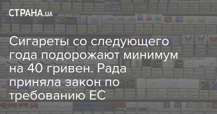 "В следующем году пачка сигарет вырастет где-то на 40 гривен. Может, больше, так как акцизы этим законом будут привязаны к евро и постепенно приближаться в своем объеме к минимальным требованиям ЕС", - написал Железняк.