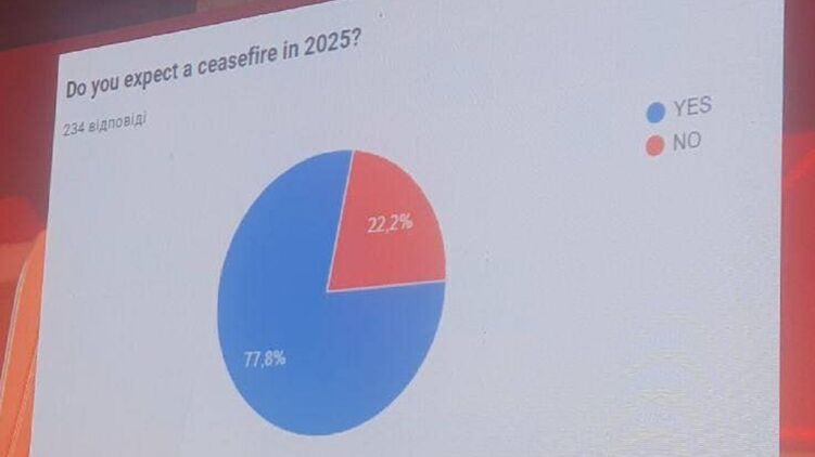 Сразу 77,8% участников ежегодного собрания членов Американской торговой палаты в Украине (AmCham) ожидают прекращение огня в 2025 году.