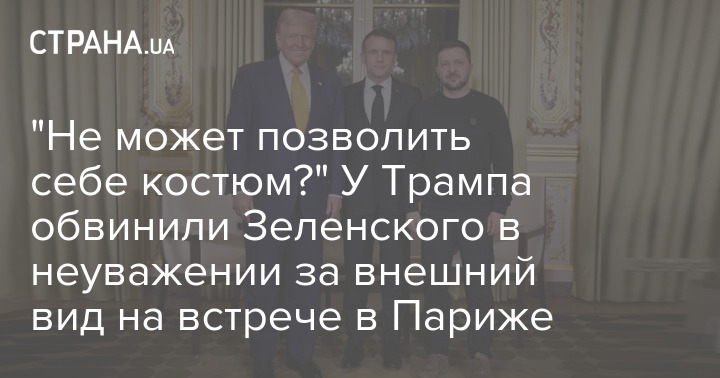 Появление президента Украины Владимира Зеленского на встрече с новоизбранным президентом США Дональдом Трампом в толстовке и военных ботинках является "неуважением".