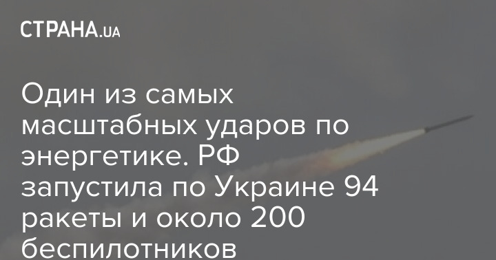 Один из самых масштабных ударов по энергетике. РФ запустила по Украине 94 ракеты и около 200 беспилотников