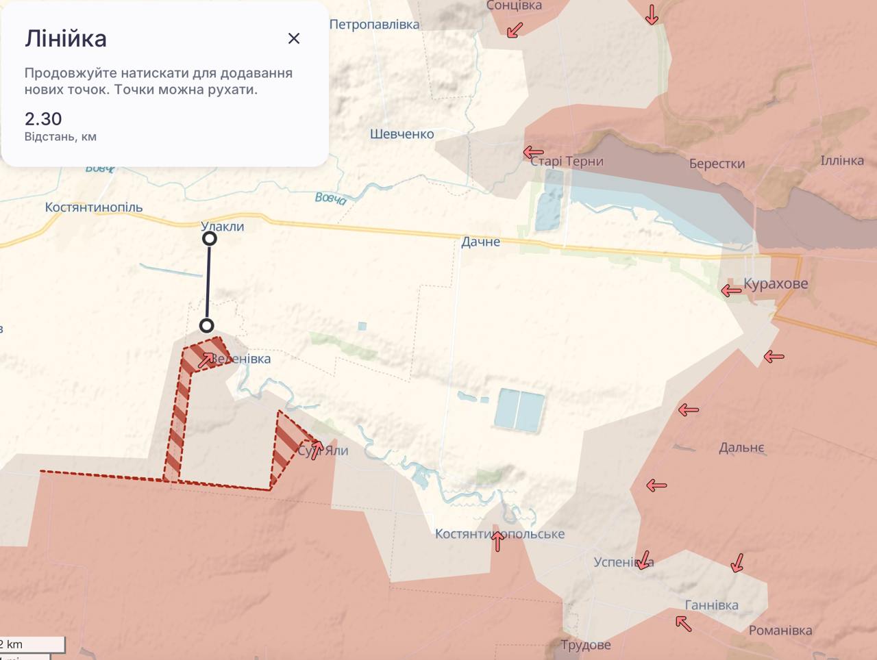 Это следует из карты военного паблика Deep State. От Зеленовки до трассы осталось менее двух с половиной километров. До этого расстояние было свыше пяти км.