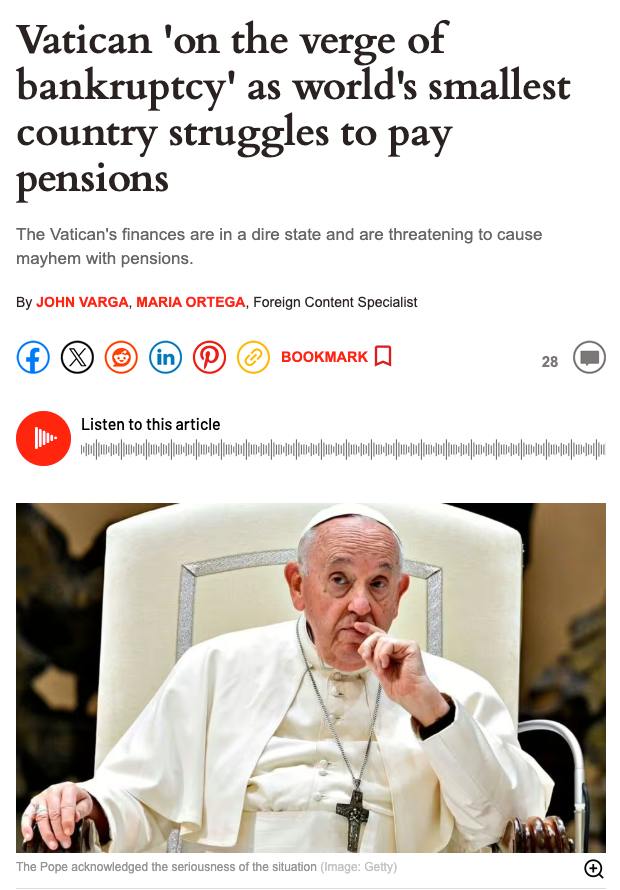 Основной причиной дефицита газета называет сокращение пожертвований от католических церквей по всему миру, а также со стороны населения. Связано это с тем, что, во-первых, многие католики разочаровались в реформах папы римского Франциска. Другая причина – низкий уровень посетителей Ватикана по сравнению с допандемийными показателями.