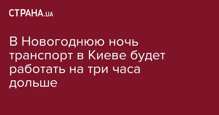 В столице Украины, в ночь с 31 декабря на 1 января, будет продлена работа общественного. Работа киевского метро и маршрутных автобусов будет продлена на 3 часа. Об этом сообщает УНИАН.
