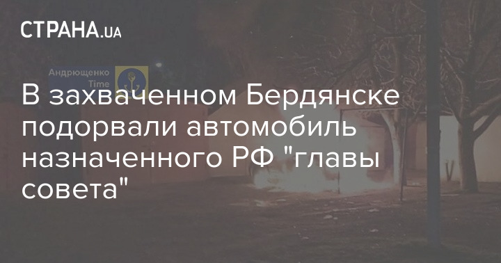 В Бердянске подорвали автомобиль главы оккупационного совета города. Фото: t.me/andriyshTime