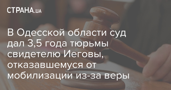 Ивановский районный суд Одесской области приговорил к 3,5 годам тюрьмы инженера лицея и члена организации "Свидетели Иеговы", отказавшемуся от мобилизации из религиозных соображений. Он заявлял, что считает себя "нейтральным к государству, не относит себя к украинскому народу, а является сыном бога".