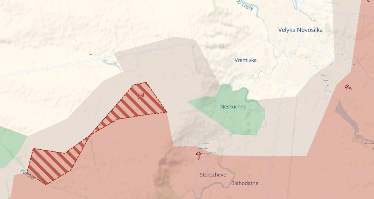 16:23 Россияне продвинулись к западу от Великой Новоселки, при этом продолжаются бои за трассу в сторону Гуляйполя и севернее ее.