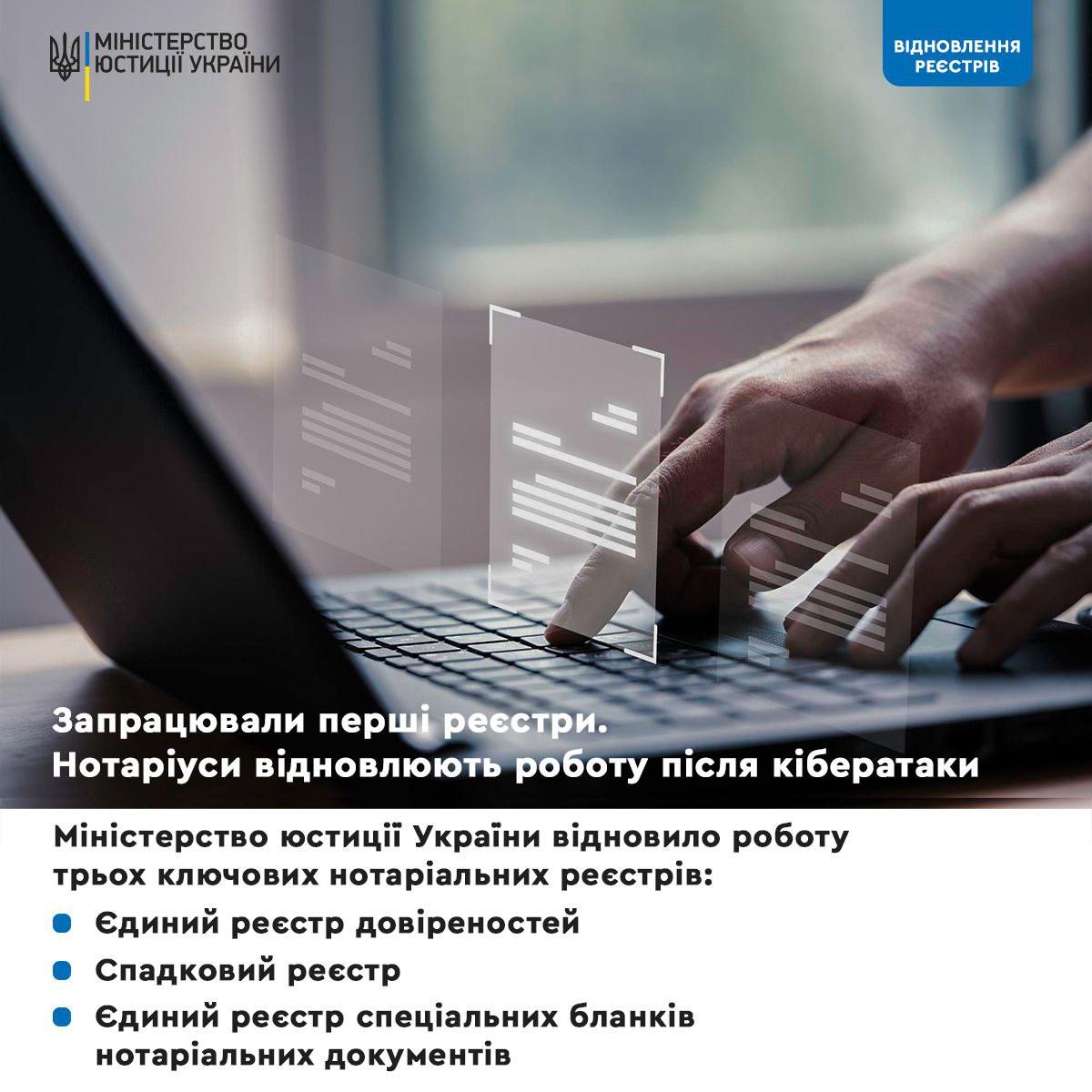 В Украине заработали первые государственные реестры после массированной кибератаки российскими хакерами.