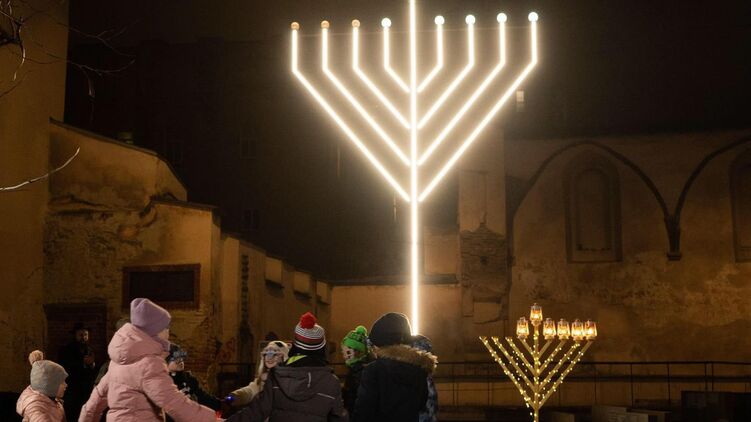Во Львове неизвестный погасил еврейскую ханукальную менору, недавно впервые установленную в городе.