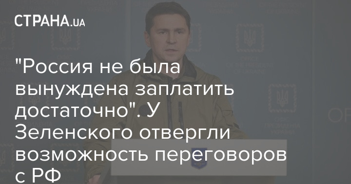 "Россия не была вынуждена заплатить достаточно". У Зеленского отвергли возможность переговоров с РФ
