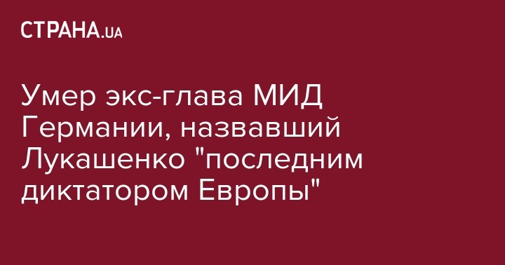 Умер экс-глава МИД Германии, назвавший Лукашенко "последним диктатором Европы"