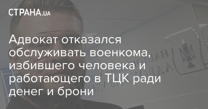 Адвокат отказался обслуживать военкома, избившего человека и работающего в ТЦК ради денег и брони