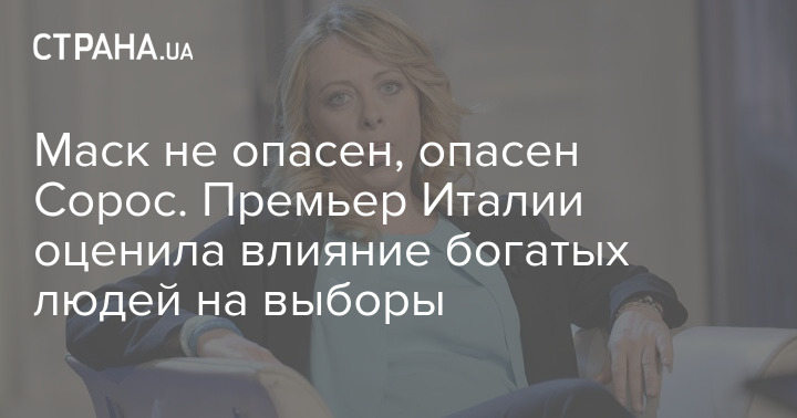 Маск не опасен, опасен Сорос. Премьер Италии оценила влияние богатых людей на выборы