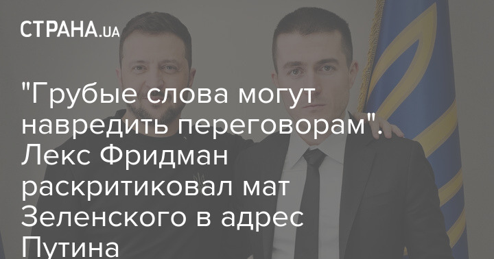Американский подкастер Лекс Фридман раскритиковал Владимира Зеленского за матерные высказывания в адрес Владимира Путине во время трехчасового интервью с ним.