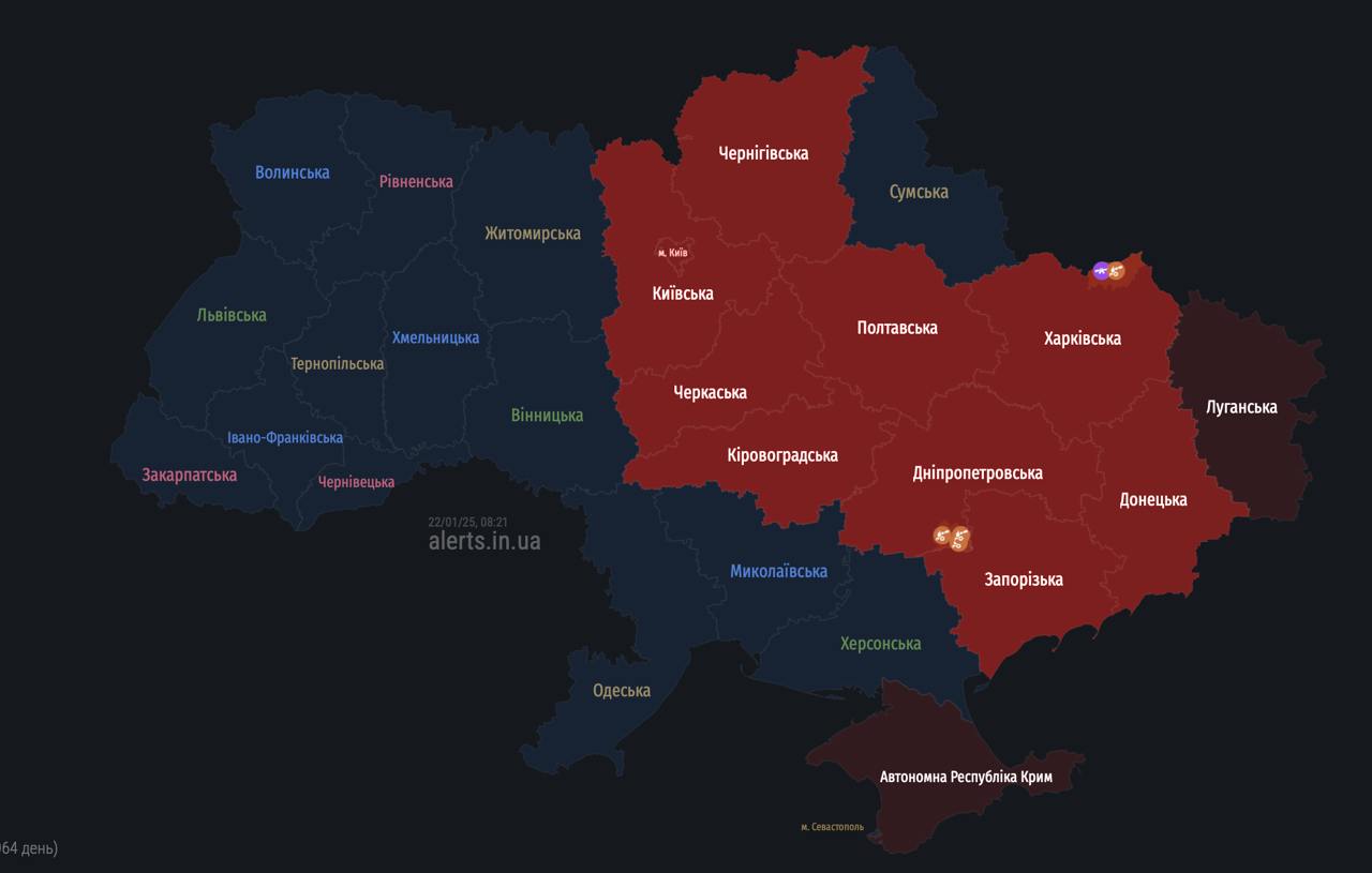 08:22 Тревога в Киеве и ряде регионов. Мониторинговые паблики пишут об угрозе баллистики.