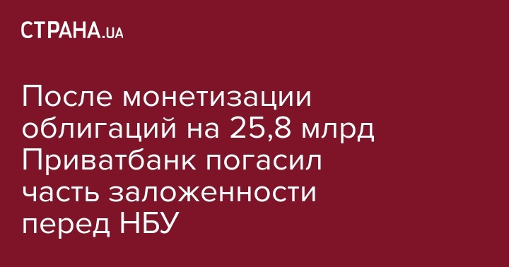 После монетизации облигаций на 25,8 млрд Приватбанк погасил часть заложенности перед НБУ
