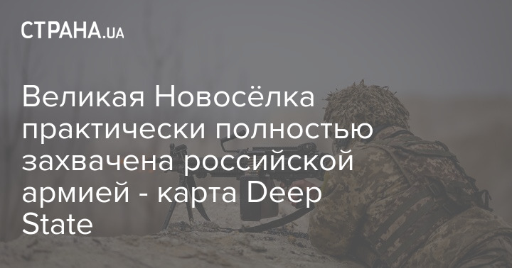 Поселок Великая Новосёлка в Донецкой области практически полностью захвачена российской армией. Об этом свидетельствует карта украинского военного паблика Deep State.